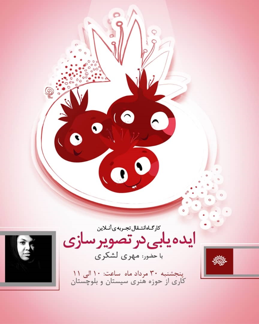 به گزارش روابط عمومی مرکز تجسمی حوزه هنری،کارگاه انتقال تجربه آنلاین با عنوان «ایده یابی در تصویرسازی» با حضور مهری لشکری، تصویرگر هرمزگانی، ۳۰مرداد ماه در حوزه هنری سیستان وبلوچستان برگزار شد.این کارگاه به منظور بالا بردن کیفیت، شناخت وسطح آگاهی هرچه بهترهنرمندان پاتوق تصویرسازی حوزه هنری درمبحث ایده خلاق درآثار برگزارشد .