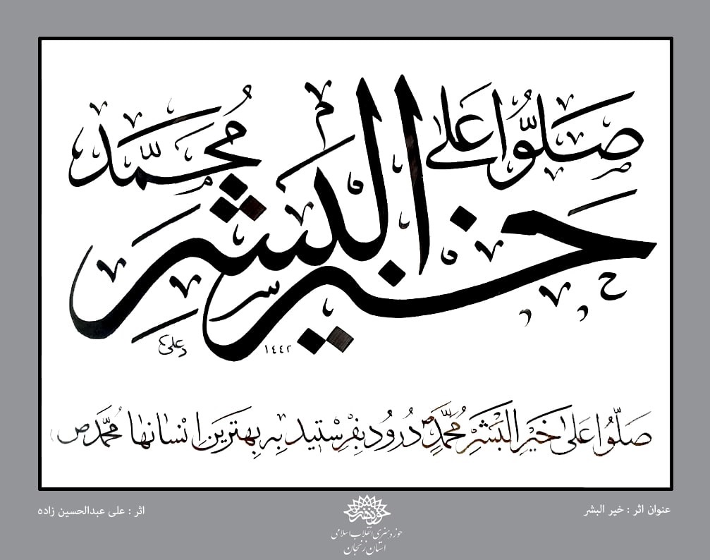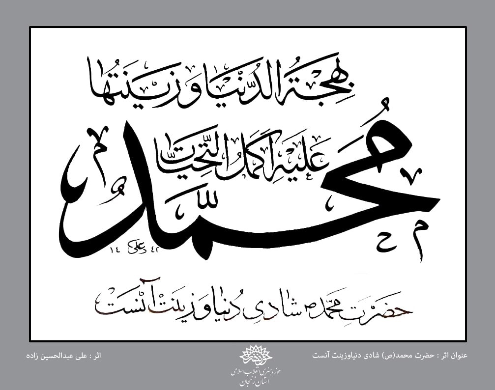 این هنرمند با اشاره به اینکه تمامی هنرمندان در رشته‌های مختلف به ویژه خوشنویسی باید چهره نورانی پیامبر و سنت ایشان را به تصویر بکشند، افزود: پیامبر ما بسیار مظلوم است و از همان زمان پیامبری ایشان، بودند کسانی که ایشان را تخریب می‌کردند، چنانچه در حال حاضر نیز دشمنان به شیوه‌های مختلف از هیچ اقدامی در جهت توهین به ساحت مقدس ایشان غافل نمی‌شوند.