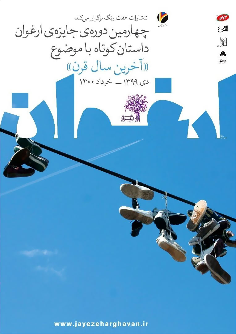 به گزارش روابط عمومی مرکز تجسمی حوزه هنری به نقل از روابط عمومی جایزه ادبی «ارغوان»، مجید عباسی، طراح پیشکسوت که پوستر این رویداد ادبی را طراحی کرده، در اینباره نوشته است: «طراحی پوستر چهارمین دوره جایزه «ارغوان» همانند دورههای پیشین از ساختاری واحد پیروی میکند که به کمک تصویر مبتنی بر موضوع از دورههای پیشینش تمیز داده میشود. «آخرین سال قرن» سالی سرشار از اتفاقات سخت و ناگوار بود که انسانیت را فارغ از رنگ، سن و جنسیت به چالش کشید؛ گویی کفشهای آویزان، نشانههایی هستند از این انسانهای درمانده که در انتهای قرن معلق و بلاتکلیف ماندند.»