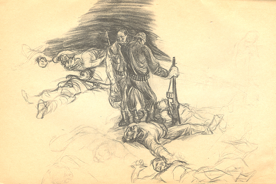 ج: من در این سالها کار میکردم ولی چون مسائل سیاسی-اجتماعیِ کشور مصادف شده بود با اتفاقهای جدیدی در زندگی شخصیام مثلِ ازدواج و بچهداری، کار کردن من هم کمتر شده بود ولی این روند هیچوقت قطع نشد. در همان سالها کتاب «افسانههای کُردی» علیاشرف درویشیان را تصویرگری کردم. داستانهای این کتاب، بعدها بسیار در زندگی من تأثیر گذاشت. همچنین یکسری کار در مورد جنگ انجام دادم که همه طراحی بود. در همین سالها اگر طبیعت بیجان یا پرترهای هم کار کردم خیلی به فضای همان دوره نزدیک بود.
