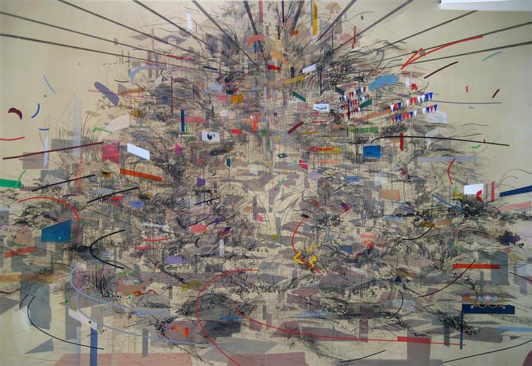 "جولی مِهرِتو" (Julie Mehretu) متولد سال 1970 در آدیسا بابا اتیوپی است. شما به کارهای مهرتو نگاه می کنید و او دست شما را می گیرد و با هم از دالان های زمان و گاه مکان رد می شوید، به گذشته می روید و هر وقت دل تان بخواهد، بر می گردید. در کارهای او زمان و مکان بر خلاف رمان یا رویکرد فوتوریستی، کوبیستی مترادف یکدیگر قرار می گیرند؛ در حوزه ی زیباشناسی شبیه اتوپین ها می خواهد هیچ چیز بدون معنا نباشد.