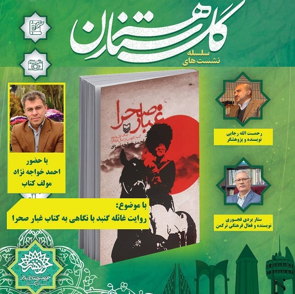 هفتمین نشست از سلسله نشست های گلستان هنر؛ روایت غائله گنبد با نگاهی به کتاب"غبار صحرا" باحضور احمد خواجه نژاد مولف کتابو کارشناسان اقایان رحمت الله رجایی و ستار بردی فجوری
