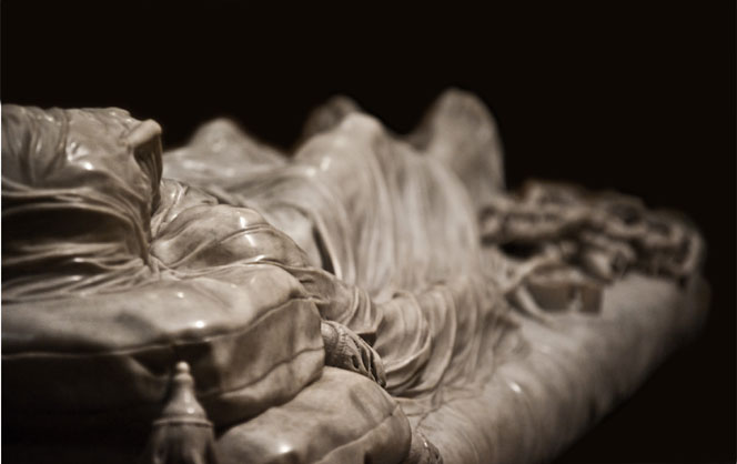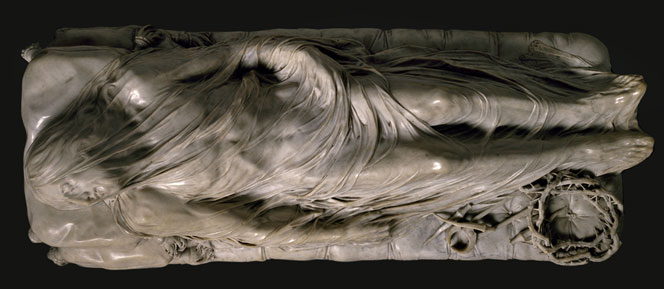 حالت خفته پیکر مسیح و آرامشِ خاصِ نهفته در اثر، چین و شکن های ظریف پارچه، حالت دست ها و فرم سر و ظرافتی که پارچه ای همچون حریر، روی پیکر را پوشانده بسیار قابل توجه هستند. پارچه به قدری سبک و زیبا و لطیف و هنرمندانه از دل مرمر برآمده که شاید در لحظاتی به سنگ بودنش شک کنیم.